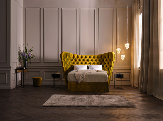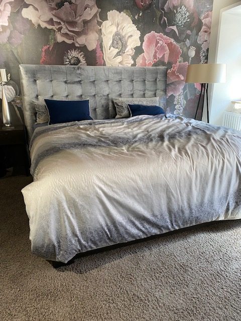 Und seit 10 Jahren steht das Grand Cru Bett auch in unserem Showroom in Wasserburg. Verschiedenste Varianten hatten wir in unserer Ausstellung stehen. Aktuell haben wir in unserer Ausstellung das Grand Cru Bett Raphael mit einem attraktiven grauen Veloursstoff der Firma Dedar. Die Größe des Bettes ist 200/210cm.